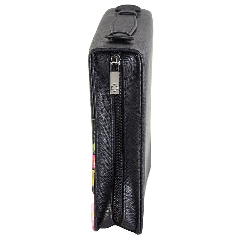 Protect and personalize your Bible with our vibrant watercolor floral Bible cover. The faux leather contrasting spine and soft touch art panel make for a stunning combination. With a zip closure and room for Bibles up to 10.5"x7"x1.75", this cover is a stylish and functional must-have for any woman of faith.