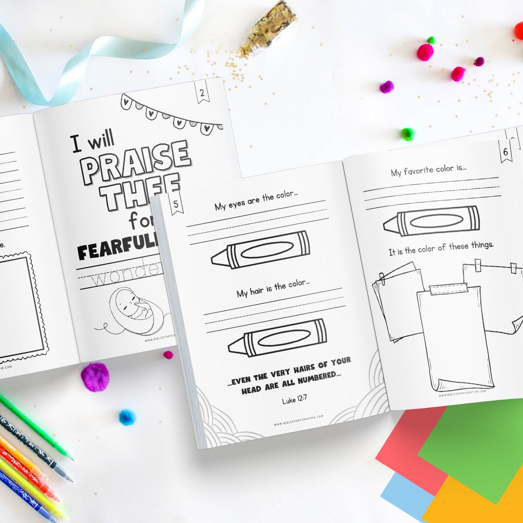 Each page is carefully designed to reinforce Biblical truth that they are fearfully and wonderfully made by God. You’ll find themes that highlight virtues like kindness, generosity, forgiveness; to praise and serve God. The activities provide spaces for children to write about themselves and their favorite things also.
